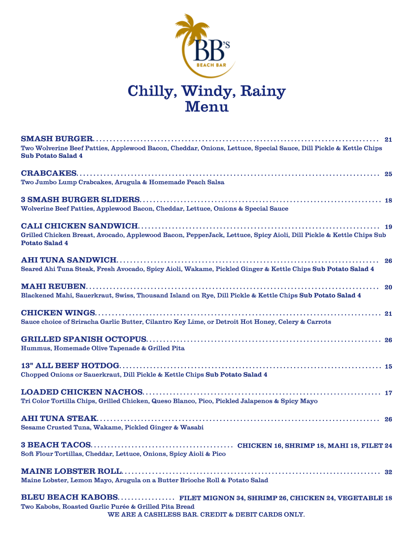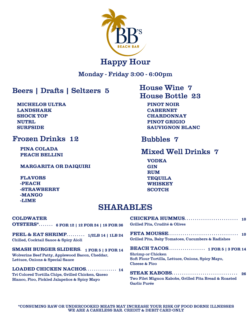 Welcome to BB's Beach Bar, a seaside culinary gem located at 501 N Miramar Ave, Indialantic, FL. This charming bar offers a delightful menu that perfectly complements its stunning beachfront views. Start your visit with their renowned strawberry margaritas, praised for being refreshingly delicious, as noted by satisfied patrons like Andrew H.